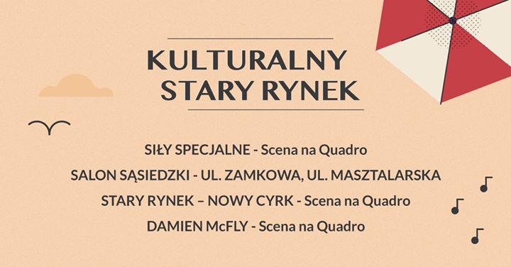 Od piątku do niedzieli czeka na nas aż 5 wydarzeń. Zaczynamy koncertem zespołu „Siły specjalne” (Nordoff Robbins Polska). W sobotę od godziny 11 zapraszamy na spotkanie z artystami ulicznymi pod hasłem „Stare Miasto – Nowy #Cyrk ” (Fundacja Pro-Spin). Na to wydarzenie szczególnie zapraszamy wszystkie #DZIECI ! W sobotę i niedzielę po raz pierwszy w tym sezonie zapraszamy na Salon Sąsiedzki – Kulturalny Stary Rynek. Będą koncerty, animacje i smaczne przekąski! Weekend zakończymy zaś wieczornym koncertem na Scenie na Quadro – z Damien Mcfly w roli głównej. To będzie prawdziwy hit! Wstęp na wszystkie wydarzenia jest darmowy.