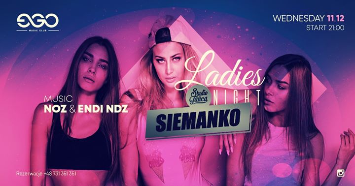Razem z Siemanko Studio Tańca rozkręcamy środowe Ladies Night! W związku z tym, że mamy okres świąteczny, na imprezie będziecie mogli dostać vouchery do SIEMANKO na bezpłatne zajęcia. Podczas imprezy będziecie również świadkami pokazu tanecznego. Nie może Was tam zabraknąć!