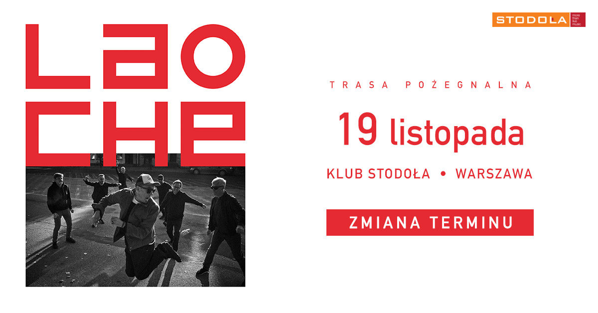 ► 20 marca 2020 / 26 czerwca 2020 / 27 listopada 2020 / 14 maja 2021, Lao Che, Klub Stodoła → 19 listopada 2021 (piątek) ✅
