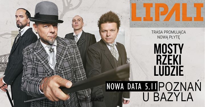 W związku z obecną sytuacją epidemiologiczną na świecie koncert Lipali w Klub u Bazyla zostaje przełożony na 5.11. Zakupione bilety zachowują ważność. Zachęcamy do zachowania posiadanych biletów. Oczywiście bilety można zwracać w punktach zakupu, w sprawie zwrotu biletów kupionych na pwevents.pl prosimy o kontakt mailowy na bilety@pwevents.pl. Widzimy się na jesień, mam nadzieję, że przy pełnych salach!