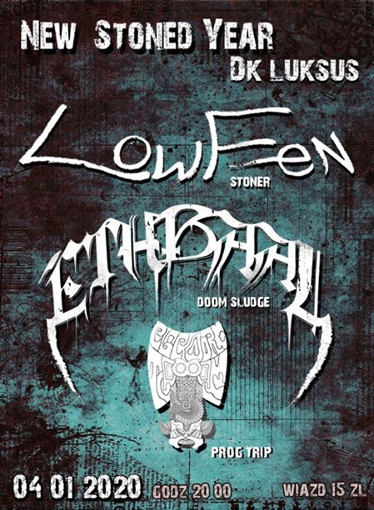 W pierwszy weekend Nowego Roku zapraszamy do D.K. Luksus na utrzymanie syslwestrowych nastrojów przy akompaniamencie trzech stonerowo doomowych ekip. Gorąco zachęcamy do uczestnictwa w tym bankiecie, bo podobno jaki pierwszy weekend taki cały poniedziałek.