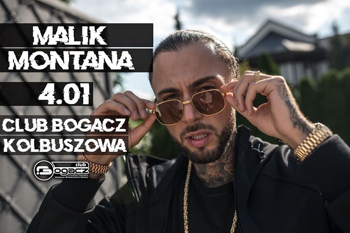 „Jagodzianki” , „Robię Yeah” , „Pistolet” – to tylko część Turbo Hitów artysty który wystąpi już 4 stycznia w Clubie Bogacz! MALIK MONTANA live on stage!