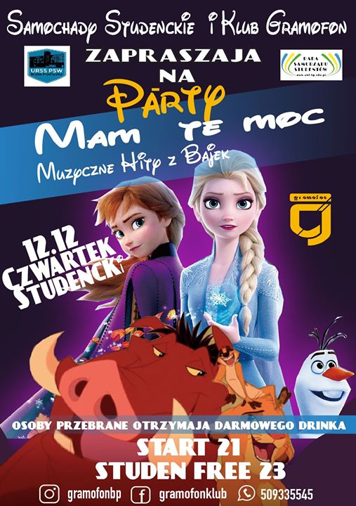 Szalona impreza podczas ktorej przewijac sie beda hity bajkowe JAk „MAM TE MOC” czy Kolorowy wiatr – Pocahontas