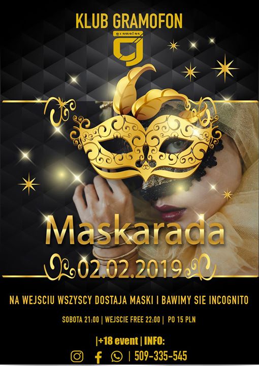 W sobote zapraszamy na prawdziwy bal maskowy. Wszyscy na wejściu otrzymaja maskę i podczas imprezy mozna bawic sie incognito :)Doda to dodatkowych emocji i nutkę tajemniczości.