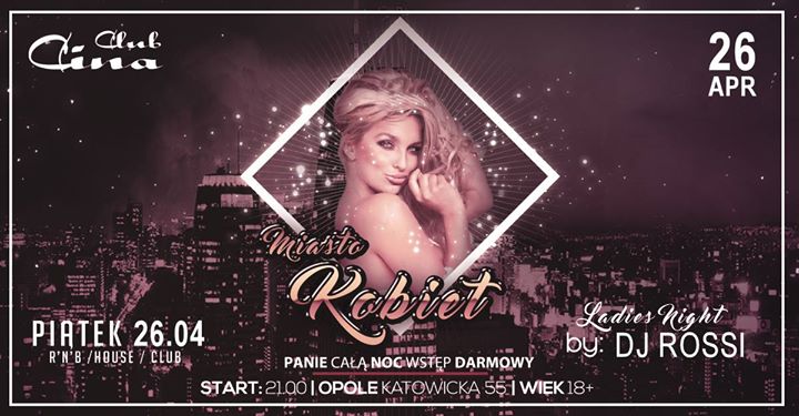 Już w najbliższy piątek impreza na najwyższym poziomie specjalnie dla wszystkich Pań … MIASTO KOBIET ! Tej nocy w naszym klubie to Wy jesteście szefami, a my będziemy spełniać wszystkie Wasze zachcianki ! Plan jest prosty: zakładajcie mini, szpilki, bierzcie koleżanki i pokażcie, że w każdy piątek miasto należy do Was !