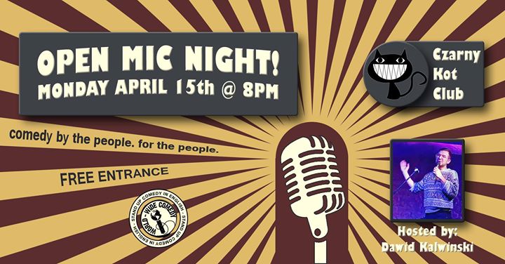 So if you’re ready to get on stage and tell your jokes, please write „Spot, please.” in the comments for the event below. Spots are assigned on a first-come, first-served basis, but we do give priority to people who are first-timers.
