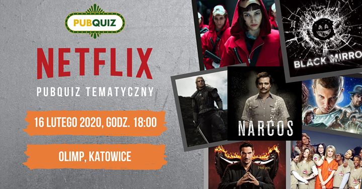 Zapraszamy na kolejny specjalny quiz tematyczny, tym razem dotyczący wybranych produkcji serialowych od Netflixa. Widzimy się 16 lutego w Katowicach w lokalu Olimp Club o godzinie 18:00. Czekać będzie na Was nasz prowadzący Sebastian! 🙋♂