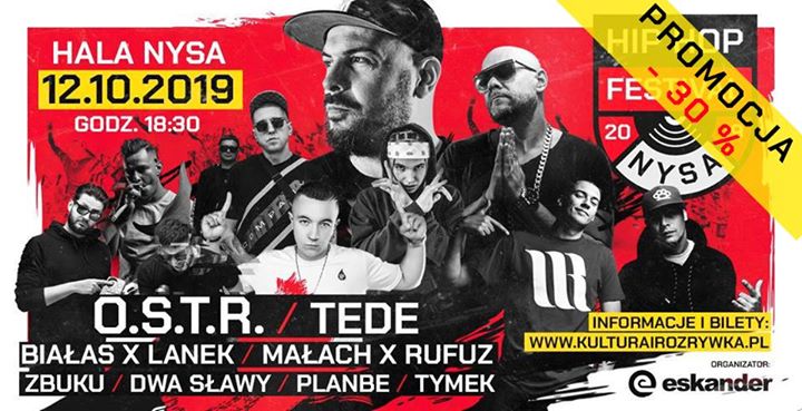 Hip-Hop Festiwal 2019 to połączenie wszystkiego, co w rodzimym Hip Hopie najlepsze. Niemal 5 godzinna impreza przy Waszych ulubionych bitach. Na jednej scenie zobaczycie gwiazdy młodego i tego bardziej doświadczonego pokolenia.