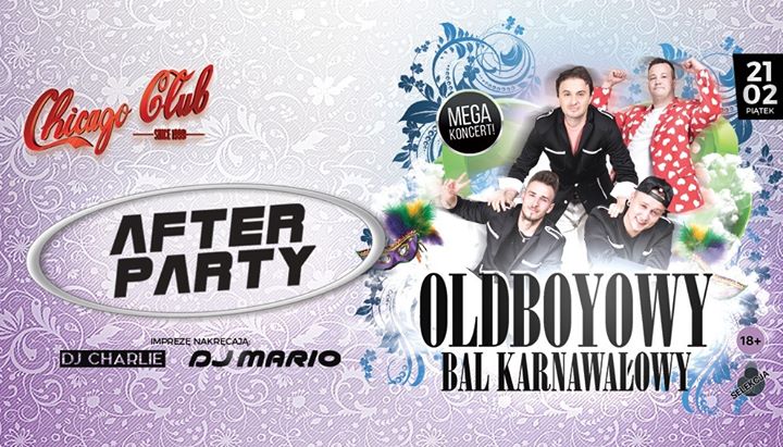 💃 🕺W piątek 21 lutego zapraszamy na Oldboyowy Bal Karnawałowy z zespołem After Party!🎈 🎏 Przetańczmy razem całą noc na 2 parkietach! ✨ Specjalnie dla Was wystąpi⚡️ Zespół After Party! ⚡️ To ostatnie #oldboysParty 🎀 przed przerwą, kolejna taka impreza dopiero pod koniec kwietnia!⚠️ Nie może Was zabraknąć‼️ 🎊 Start 21:00 ✅ Rezerwacje 605-300-255🎉