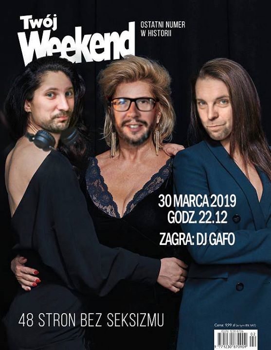 Poproszę paczkę gum „Orbit”, długopis, Kurier Lubelski, zapałki i …(niewyraźnym cichym głosem)…”Twój Weekend”. Kto tego nigdy nie robił niech pierwszy… zapłaci 250 zł za wejście do klubu. Impreza dla fanów tego doskonałego periodyku, który własnie dokonał żywota. Ostatni numer, to numer bez seksizmu, co nas niezmiernie cieszy, bo tez sprzeciwiamy sie seksizmowi w kazdej postaci (zreszta wystarczy zobaczyć naszą okładkę).W ogóle większości „izmów”, z nielicznymi wyjątkami jest nam zdecydowanie obca. Całe pokolenie współczesnych mężczyzn z wypiekami na twarzy kupowało „Twój Weekend”, by spróbować zakazanego owocu, podejrzeć „dorosłe sprawy”, dowiedzieć się czegoś mądrego . Jabbar jako stały czytelnik, podzieli się zdobytą wiedzą, a Trener jako stary feminista przedstawi własną koncepcję widzenia świata.