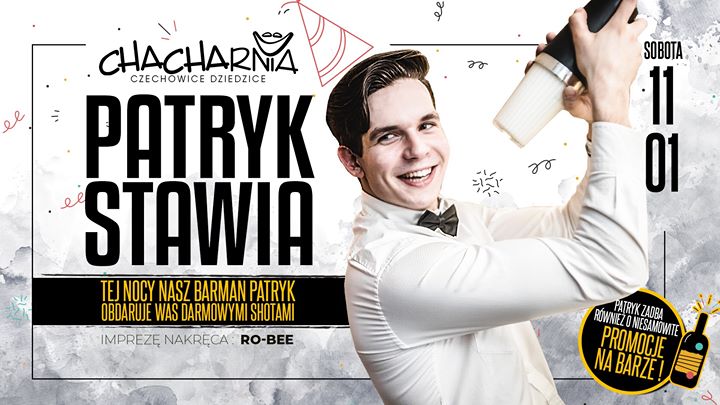 11 STYCZNIA, W SOBOTĘ 🥳 NASZ WYJĄTKOWY BARMAN ➡️ PATRYK🕺OBDARUJE WAS DARMOWYMI SHOTAMI 🥂