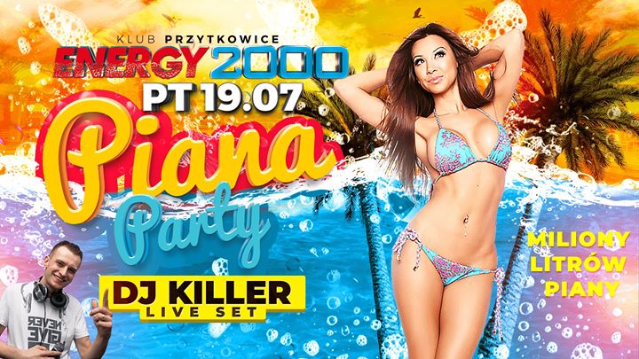 W piątek 19. lipca, zapraszamy Was na drugą imprezę z cyklu PIANA PARTY! Wakacje 2019 w Energy 2000 Przytkowice! Tej nocy zostanie użyta nasza niesamowita wyrzutnia piany MEGA FOAM JET. To potężne urządzenie, generuje miliony litrów piany i wyrzuca je z prędkością 100 km/h na odległość ponad 15 metrów. Uwierzcie nam na słowo… czegoś takiego jeszcze nie przeżyliście! Podczas imprezy zagra do Was jeden z najpopularniejszych Polskich DJ’ów młodego pokolenia DJ KILLER! Niesamowity wulkan energii, znacie go z mocnych setów i specjalnych transmisji!