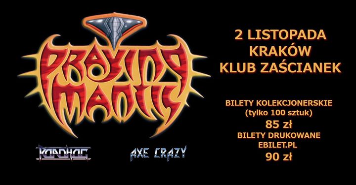 – bilety drukowane w cenie 90 zł są dostępne w serwisie ebilet.pl: https://www.ebilet.pl/muzyka/hard-heavy/praying-mantis/