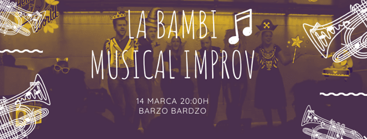Zapraszamy na spektakl grupy La Bambi – Musical Improv🦌, czyli w 100% improwizowany mjuzikal oparty na schemacie bajek np. Disneya. Jest to podróż bohatera lub bohaterki (protagonisty), który/a spotyka przeszkody na swej drodze (antagonistę).