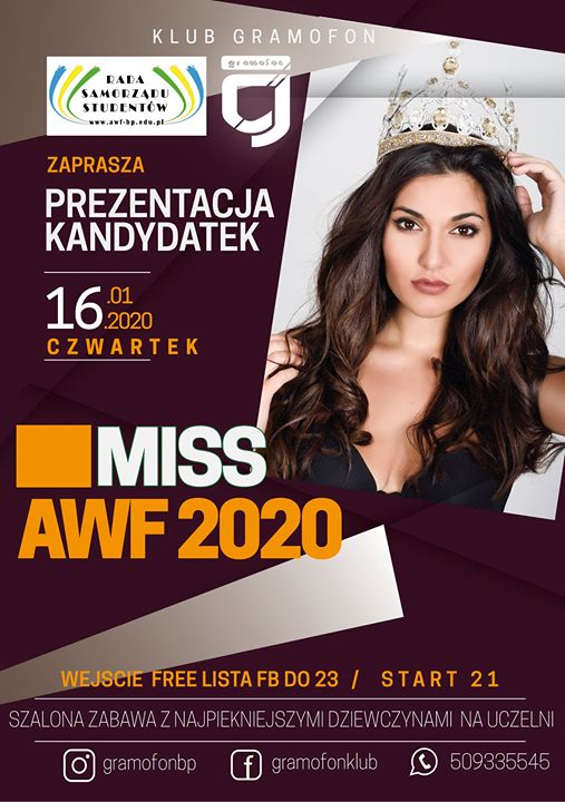 Tej nocy klub wypełni się najpiękniejszymi studentkami AWF BP. Wszyscy czekają z niecierpliwością na WYBORY MISS. Samorząd Studencki Przedstawi podczas CZWARTKOWEJ IMPREZY wszystkie kandydatki !!!! Bawimy się razem dziewczyny zrobią wielkie show piękna i dobrej energii.