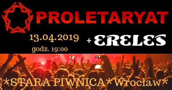 Klub Stara Piwnica zaprasza 13 kwietnia na koncert zespołu PROLETARYAT! Wraz z nami na scenie wystąpi zespół ERELES, którego muzycy swoje korzenie wywodzą ze znanej fanom formacji Kabanos!