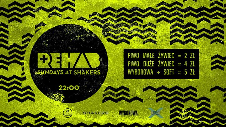 Rough weekend in Krakow’s clubs? Take a pill with us on Sunday detox-retox at Rehab in Shakers. Join where2B list to get inside for free with welcome drink and enjoy madness bar prices: beer 2/4 PLN (0.3L/05.L) and vodka + mix for 5 PLN all night long (show the stamp before order). See you at probably the only Sunday party in Krak City.