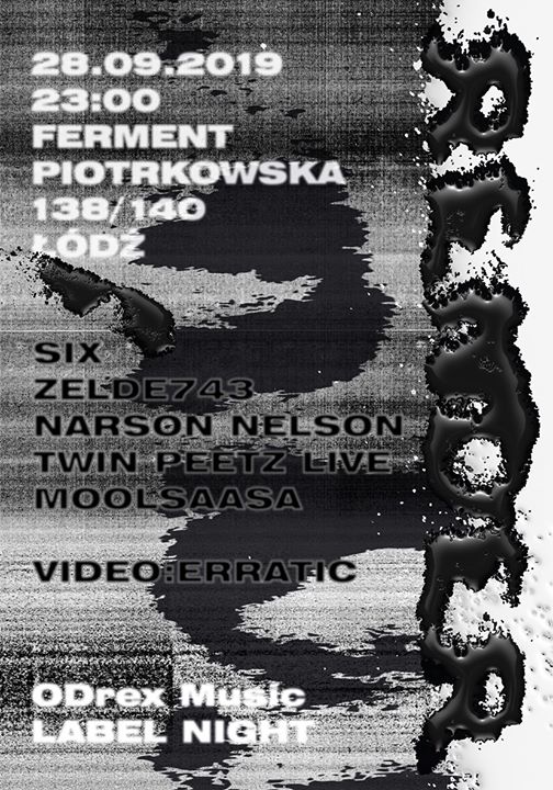 Zapraszamy na wieczór w klimacie dub techno. Swoją obecnością zaszczycą nas goście z Berlina: Twin Peetz (live) i Moolsaasa, odpowiedzialni za ODrex Music Label. Towarzyszyć im będą Six, Narson Nelson i Zelde743, a stroną wizualną zajmie się Erratic.