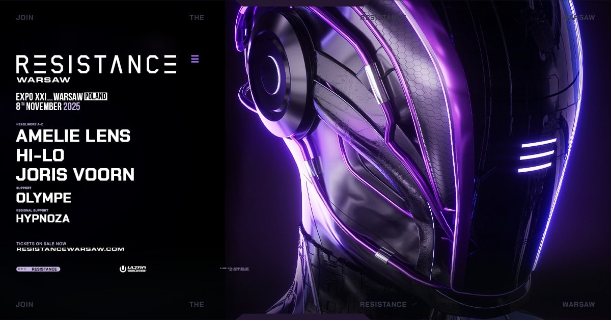 Marka Ultra Music Festival, RESISTANCE debiutuje w Polsce z pełną mocą już 8 listopada 2025 w EXPO XXI Warszawa. Po latach wyczekiwania, undergroundowy projekt – znany z najwyższej klasy produkcji i bezkompromisowej energii – wreszcie w naszym kraju.