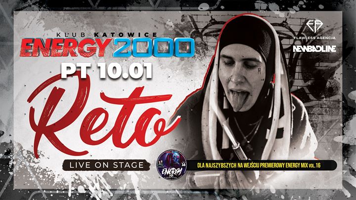 W piątek 10 stycznia zapraszamy Was serdecznie do Energy 2000, na kolejną imprezę z udziałem gwiazd polskiego hip-hopu. Tym razem na katowickiej, energicznej scenie pojawi się przedstawiciel ekipy CHILLWAGON niesamowity RETO! Usłyszycie na żywo jego największe hity „Bossman”, „UA”, „Sorry Dolores”. Tego wydarzenia naprawdę nie możecie przegapić. Będzie się działo i to sporo… to pewne! Oczywiście oprócz eksplozji Hip-Hop-owych dźwięków, czeka na Was także moc innych atrakcji i niespodzianek!
