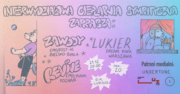 Żegnamy rok z kopa, wyskoku i chlipnięcia, ściągając do wrocławskiego Domu Kultury i Luksusu graczy, którzy jeszcze nie mieli okazji pokazać w tym rejonie na co ich stać. Zaserwujcie sobie na Gwiazdkę najbardziej tętniące życiem emo i najsmutniejszą muzykę do niekontrolowanych pląsów, a pokażecie, że Wrocław warto umieszczać na trasce.