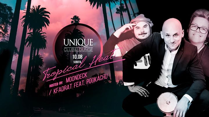 W sobotę 10 sierpnia zapraszamy na Tropical Heat, tej nocy spodziewajcie się samych gorących rytmów, które zagrają dla Was nasi najlepsi artyści. Miksować będzie Moondeck oraz Kfadrat, więc spodziewajcie się najlepszego. Na bębnach Pookachu, zapowiada się genialna noc.