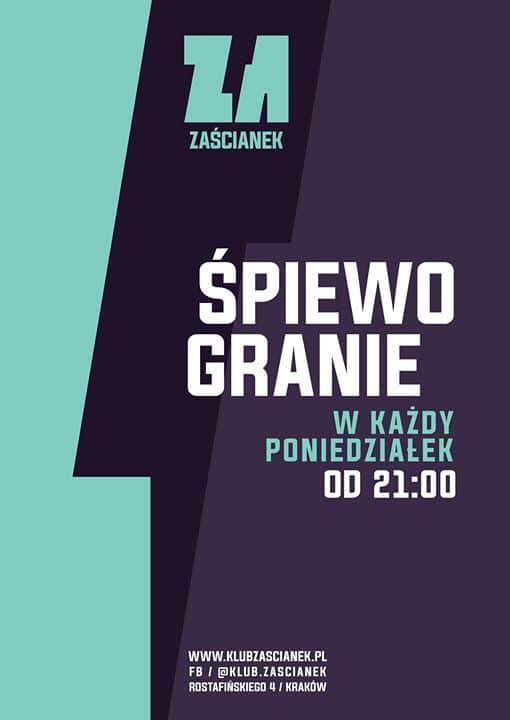 Cykliczne wydarzenie – Śpiewogranie, cieszące się dużą popularnością w naszym klubie. Organizowane jest co tydzień, w każdy poniedziałek o godzinie 21:00. Wstęp na to wydarzenie jest całkowicie za darmo! Zbierajcie ekipę, zabierajcie ze sobą instrumenty muzyczne – gitary, cajon’y, harmonijki, tamburyny i bawcie się razem z innymi uczestnikami! Serdecznie zapraszamy!