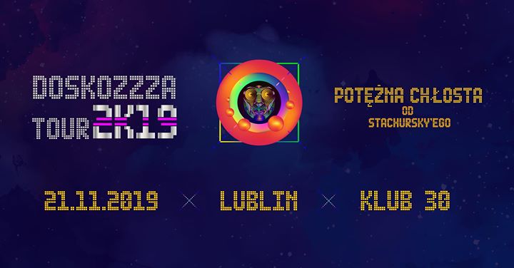 „Doskozzza Tour 2K19” to prawdziwa, muzyczna chłosta od Stachursky’ego! Koncert z nowej trasy promującej najnowszą płytę „2K19”, będącą kontynuacją platynowego „1999” oraz złotego krążka „2009”, z których pochodzą takie utwory jak „Dosko”, czy „Jam jest 444”. Wręcz kultowy już pierwszy singiel Doskozzza sprawił, że nowy projekt Stachursky’ego zdominował Internet jednocząc wokół niego unikatową społeczność młodych ludzi. Czeka was totalnie eksperymentalny koncertowy elektro pocisk! Będzie Neovixa, a zmiłowania i łaski na pewno nie będzie!