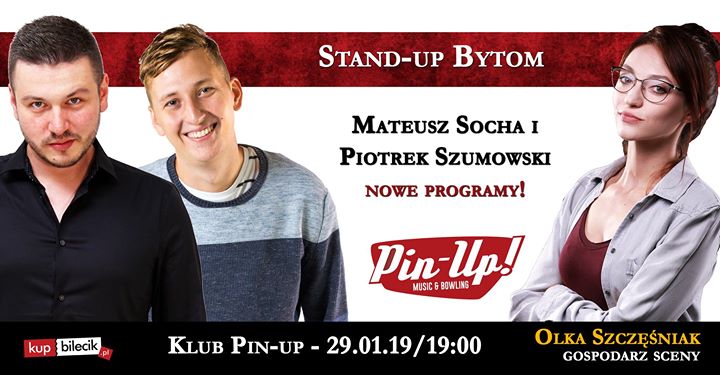 Otwarcie stałej sceny komediowej w Bytomiu. Gospodarzem jest Olka Szczęśniak, która co miesiąc będzie zapraszać najlepszych komików z Polski. Na pierwszy ogień Mateusz Socha i Piotrek Szumowski- czyli dwie absolutne petardy. Nowe programy, nowa moc! Tego nie można przegapić!
