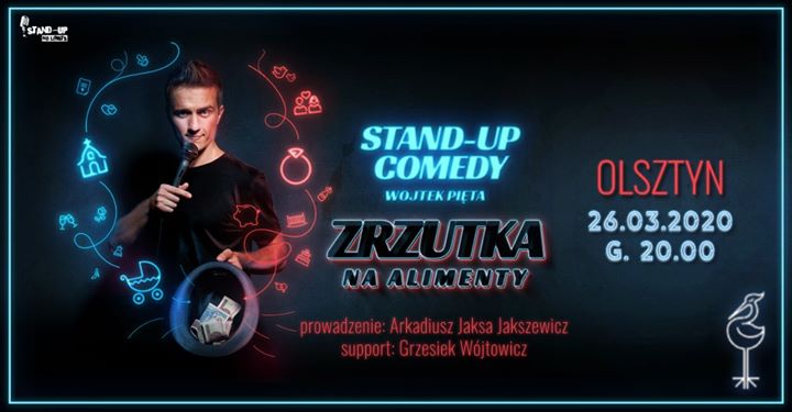 Wojtek Pięta powraca na scenę ze swoim nowym materiałem „Zrzutka na alimenty”. Stresujące życie przyszłego męża przeplatane z historiami z niezapomnianych melanżów kawalera rozbawią was do łez. Wojtek nie pozostawia na sobie suchej nitki i bezkompromisowo opowiada o swoich przeżyciach. To wszystko i jeszcze więcej do usłyszenia na występach w twoim mieście!