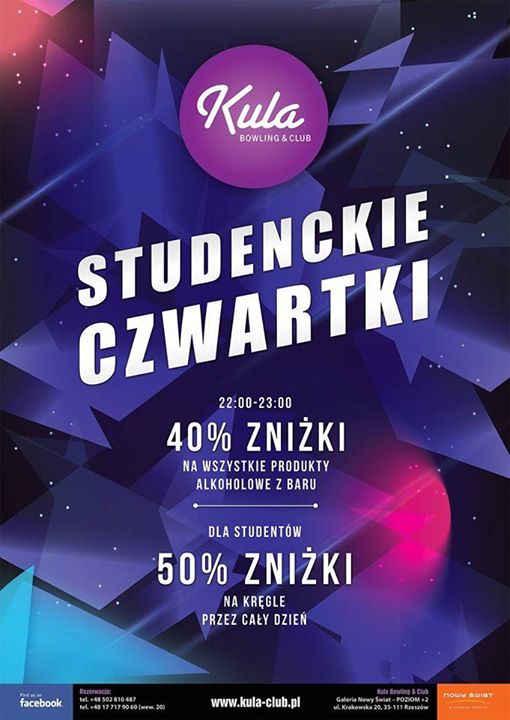 * 50% rabatu na kręgle i bilard dla studentów przez cały dzień!