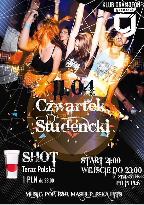 Jak na czwartek przystalo pora na Studencki MELO. Oba Samorzady PSW i AWF zapraszają na mega impreze z Shotami za 1 zl do 23:00 a potem super wariacka zabawe do bialego rana.
