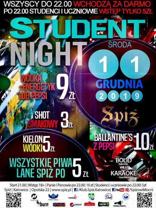 Tej nocy w Spiżu rządzą głównie studenci ale nie tylko, bo wbić na imprezę powinien każdy kto lubi dobrą zabawę i nie chce za dużo wydać na barze!