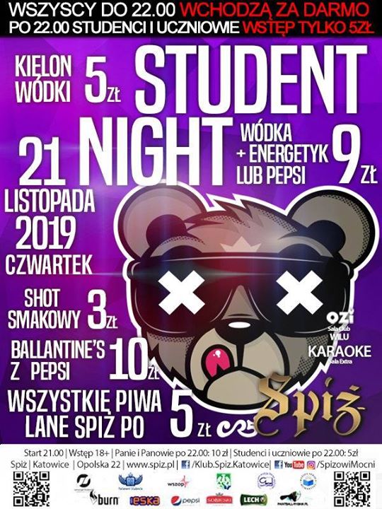 Tej nocy w Spiżu rządzą głównie studenci ale nie tylko, bo wbić na imprezę powinien każdy kto lubi dobrą zabawę i nie chce za dużo wydać na barze!