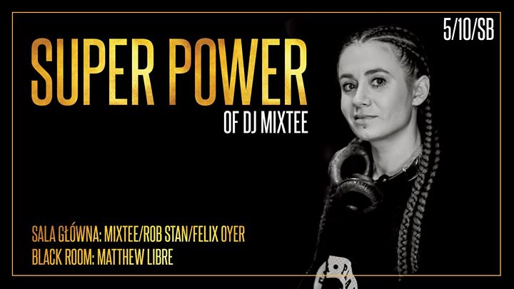 Super Power! Tego na pewno nie zabraknie w najbliższą sobotę. Za sterami pełna pozytywnej energii Dj Mixtee. Nie po raz pierwszy z nami, więc wiemy czego się spodziewać.