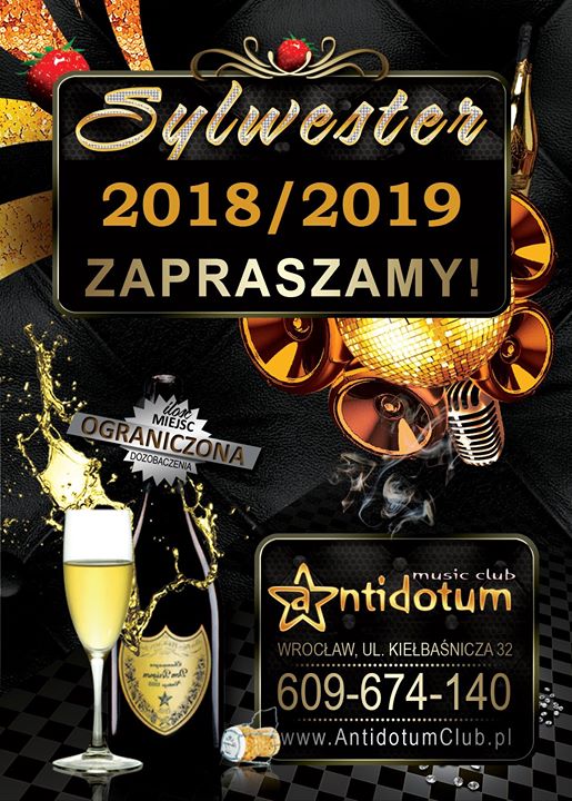Koszt 100 zł od osoby** (wstęp, bezpłatna szatnia, lampka szampana o północy, miejsce stojące, dla chętnych przywitanie Nowego roku na Wrocławskim Rynku)