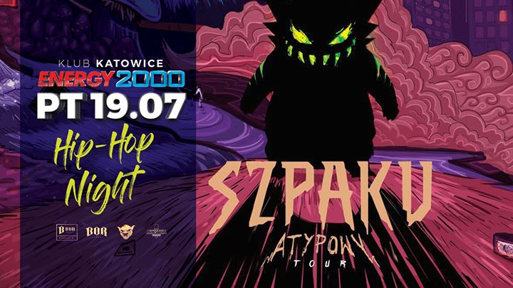 W piątek 19. lipca zapraszamy do katowickiego Energy 2000, na kolejną imprezę z udziałem gwiazd polskiego hip-hopu. Na Wasze specjalne życzenie na energicznej scenie pojawi się jedyny i niepowtarzalny SZPAKU! Twórca hitów: „Hinata”, „Ufo” i wielu innych. Oczywiście oprócz eksplozji Hip-Hop-owych dźwięków, czeka na Was także moc innych atrakcji i niespodzianek: pokaz pirotechniki scenicznej, wyrzutnie ognia i co2, multilaser-show oraz inwazja naszych firmowych gadżetów!