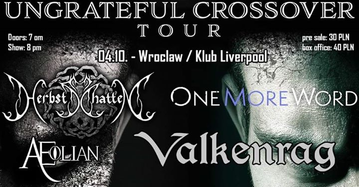 Die german bands HERBSTSCHATTEN (black metal) and ONE MORE WORD (modern metal) are going for the first time on tour together. We are happy to present these two bands, which genres are quite different, together one the same tour. The bands will play each show with always changing local supports and international headliner bands, so no show will be like the other.