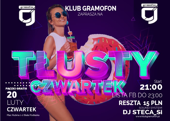 W TEN CZWARTEK SZYKUJE SIĘ TŁUSTA IMPREZA. W tłusty czwartek spalamy kalorie w tańcu. ALE I objadamy sie tradycyjnie PĄCZKAMI + PROMOCYJNIE ZAPIJAMY SHOTEM PĄCZUŚ o smaku nadzienia RÓŻANEGO :)))))