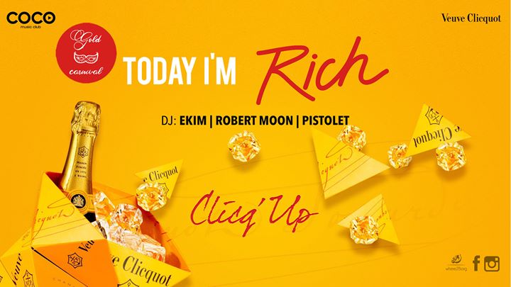 #Cocomusicclub wraz z marką #VeuveClicquot zapraszają na cykl imprez: „TODAY I’M RICH”: specjalna karnawałowa edycja! 20 pierwszych Pań, które dopiszą się listy gości dostaną od ZŁOTE MASKI KARNAWAŁOWE! #KARNAWAŁ świętujemy po królewsku!