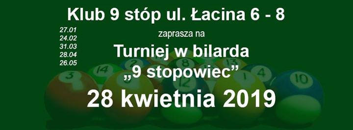 Zapraszamy na Turniej Bilardowy „9-stopowiec” – dla amatorów który odbędzie się 28 kwietnia 2019r.