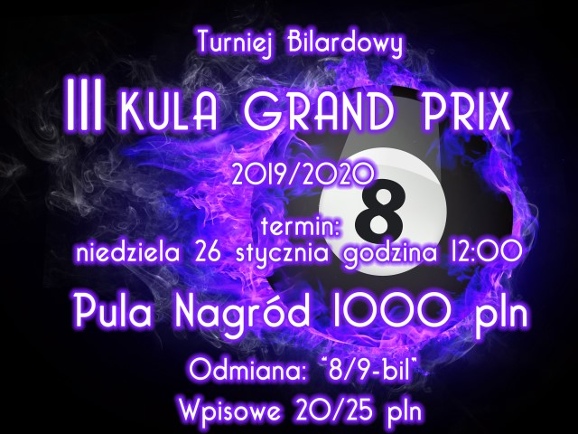 Seria Amatorskich Turniejów Bilardowych KULA GRAND PRIX, które zakończą się finałowym Turniejem MASTERS!