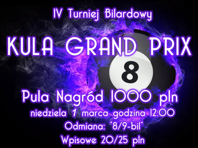 Seria Amatorskich Turniejów Bilardowych KULA GRAND PRIX, które zakończą się finałowym Turniejem MASTERS!
