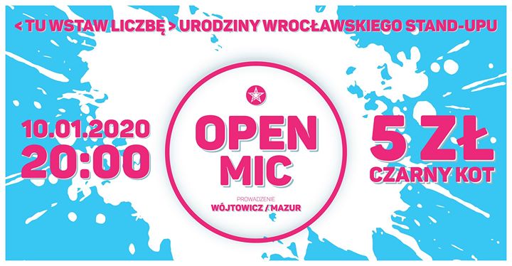 Dzień trzeci i finalny to impreza nieodrodna dla Wrocławskiego Stand-upu jak kłopoty z mikrofonem i wypłukiwaniem magnezu. Open mic to okazja dla wystąpienia dla wszystkich, którzy dopiero zaczynają ze stand-upem, a może chcą przetestować żarty. Od nich właśnie zaczynali lat temu wszyscy obecni i byli członkowie ekipy, więc nie zapraszamy na wieczór niespodziewanych wizyt i niepowtarzalnych żartów.