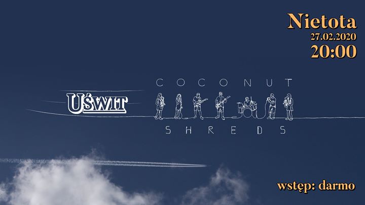 Zapraszamy na koncert wrocławskich zespołów: Uświt i Coconut Shreds! Mimo kalendarzowej zimy postaramy się nieco rozjaśnić atmosferę żywą, muzyczną energią. Funk, rock, pop: to tylko kilka nurtów, które odnajdziecie wśród pomieszanych rytmów obu zespołów.