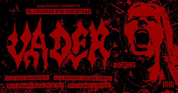 Zgodnie z zapowiedzią – związaną z odwołaniem drugiej tury “Legend Metalu” – mamy dla Was specjalne koncerty, na których przypomnieć chcemy kilka ważnych płyt w historii Vadera. Będzie można usłyszeć obszerne fragmenty “De Profundis”, “Litany” oraz “The Art of War”, jak też ostatniej EPki “Thy Messenger”. Prapremierowo zagramy także nowy kawałek z nadchodzącej dużymi krokami nowej płyty Vader. Obiecujemy około 90-minutowy ROZPIE***L !!! Serię koncertów nazwaliśmy – na cześć wracającego na sceny Kinga Diamonda i Mercyful Fate – “NO LEGENDS FOR CHRISTMAS.