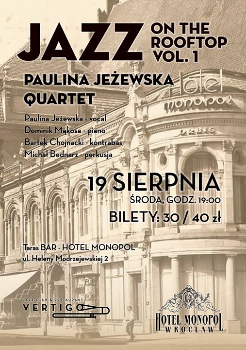 Zapraszamy na kontynuacje koncertów na pięknym tarasie Hotel Monopol Wrocław. Wspaniała panorama miasta i dźwięki jazzu, za każdym razem potwierdzają magię tego miejsca.