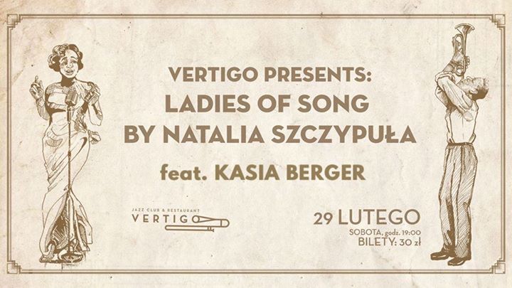 Ramię w ramię z wrocławskimi Croonerami, podąża damska strona “jazzowego medalu” zwana “Ladies Of Song”. Określenie nawiązuje do wokalistek prezentujących na scenie największe standardy jazzowe należące do tzw. Great American Songbook. Jedną z wiodących wokalistek nurtu jest Natalia Szczypuła, która poprowadzi sobotni wieczór w Vertigo.