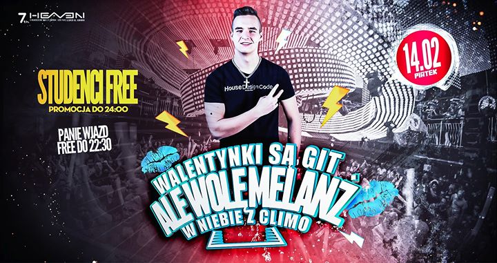 14 lutego odpalamy melanż idealny nie tylko dla zakochanych. Masa promocji, turbo okazje przy barze i najlepsza muza na dwóch parkietach. Za sterami m.in. Climo <3