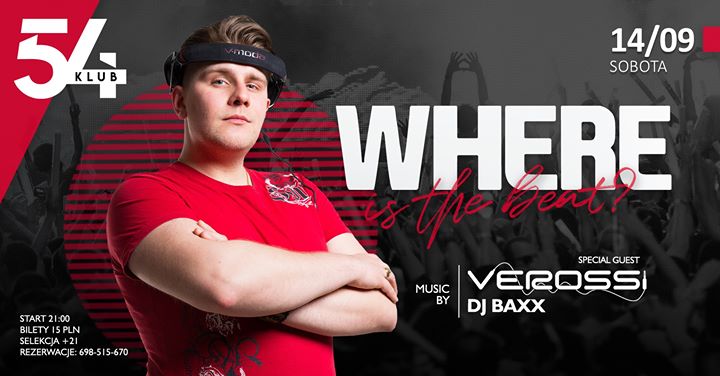 W sobotę 14 września zapraszamy na imprezę „Where is the beat?” podczas której gościem specjalnym będzie VEROSSI, międzynarodowy DJ reprezentujący Polskę m.in. w Hiszpanii, Czechach, Chorwacji, Holandii, Wielkiej Brytanii czy… Indiach. Dwukrotnie występował także na jednym z największych festiwali na świecie – Ultra Europe w Split.